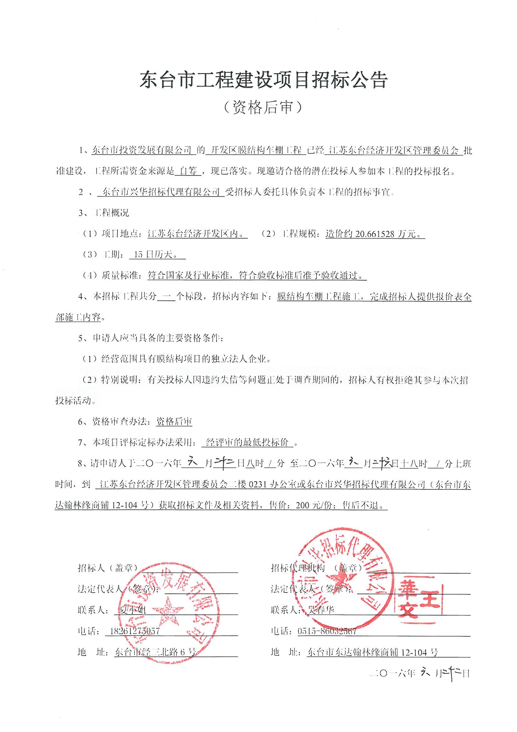 文章来源:东台市兴华招标代理有限公司 添加时间:2016/6/22 10:24:57 点击率:1894
