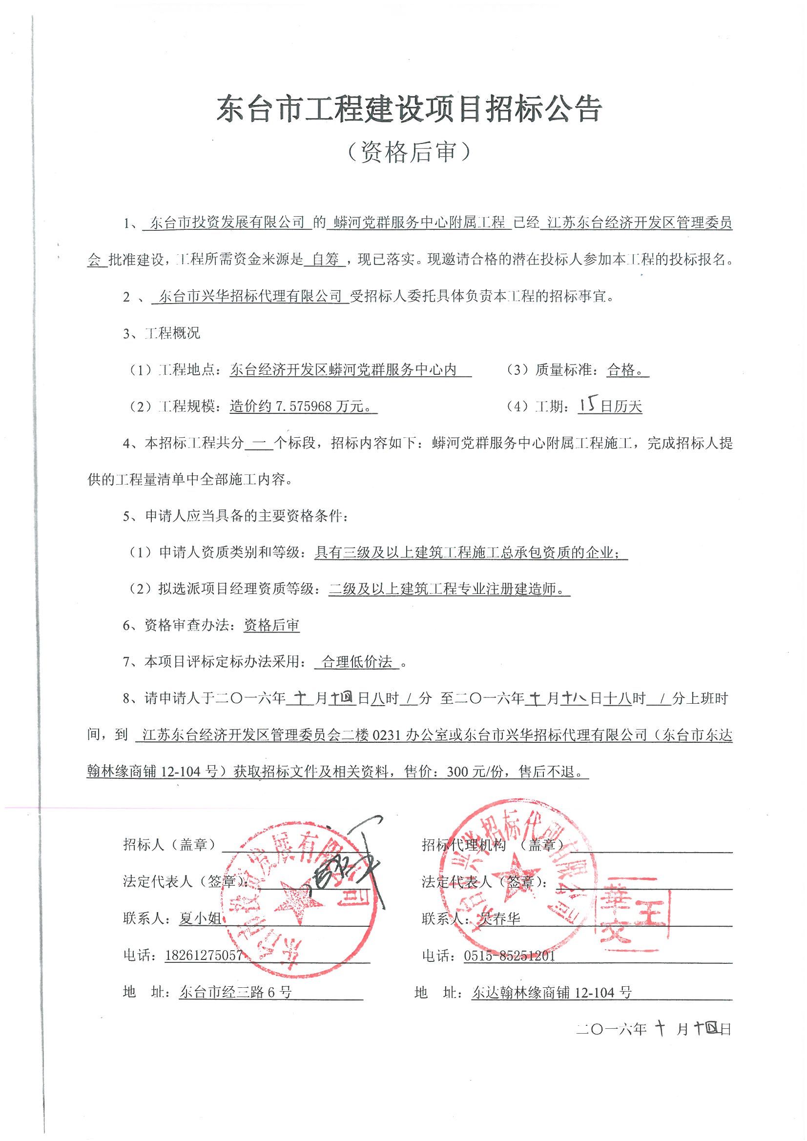 文章来源:东台市兴华招标代理有限公司 添加时间:2016/10/14 10:34:09 点击率:2033