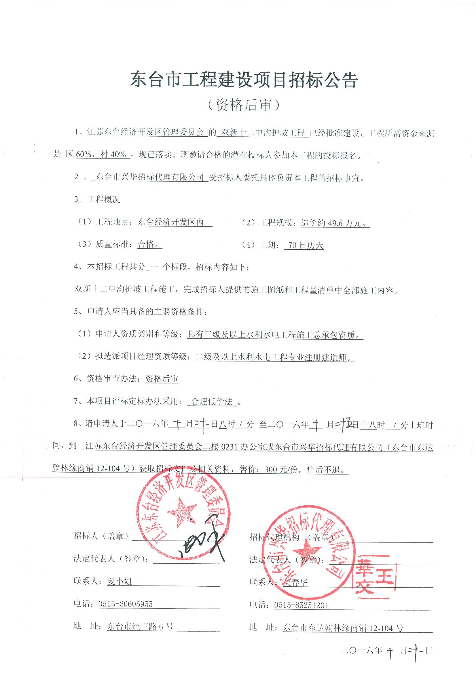 文章来源:东台市兴华招标代理有限公司 添加时间:2016/10/20 17:03:58 点击率:2072
