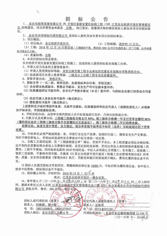 文章来源:东台市兴华招标代理有限公司 添加时间:2016/11/26 12:13:50 点击率:1793
