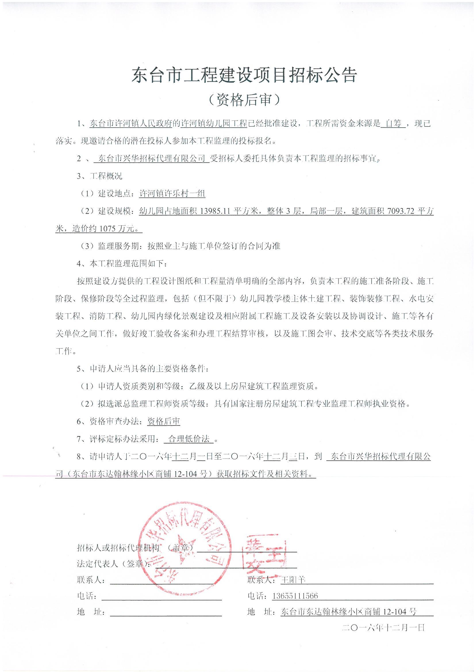 文章来源:东台市兴华招标代理有限公司 添加时间:2016/12/1 12:23:03 点击率:1813