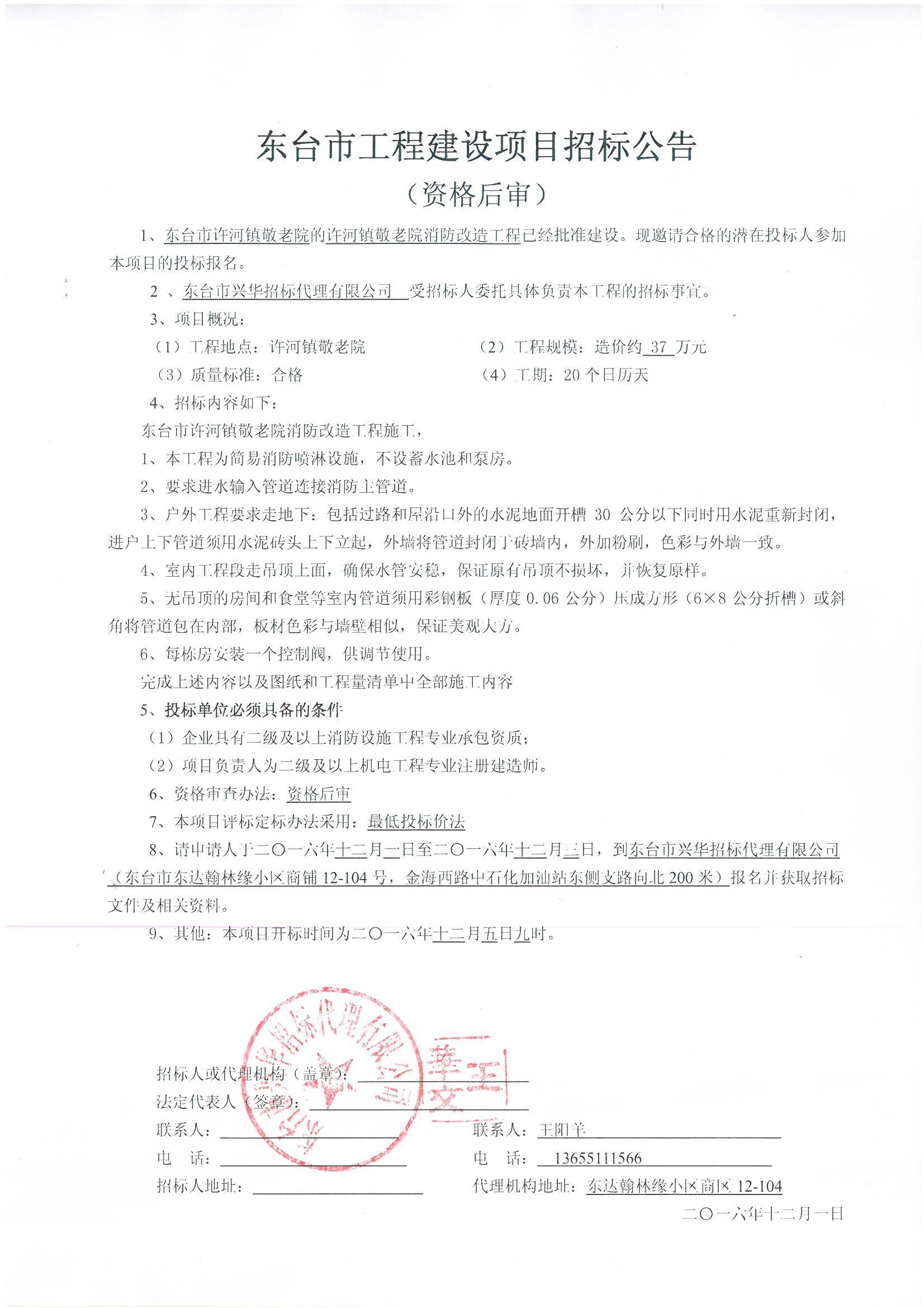 文章来源:东台市兴华招标代理有限公司 添加时间:2016/12/1 12:23:40 点击率:1799