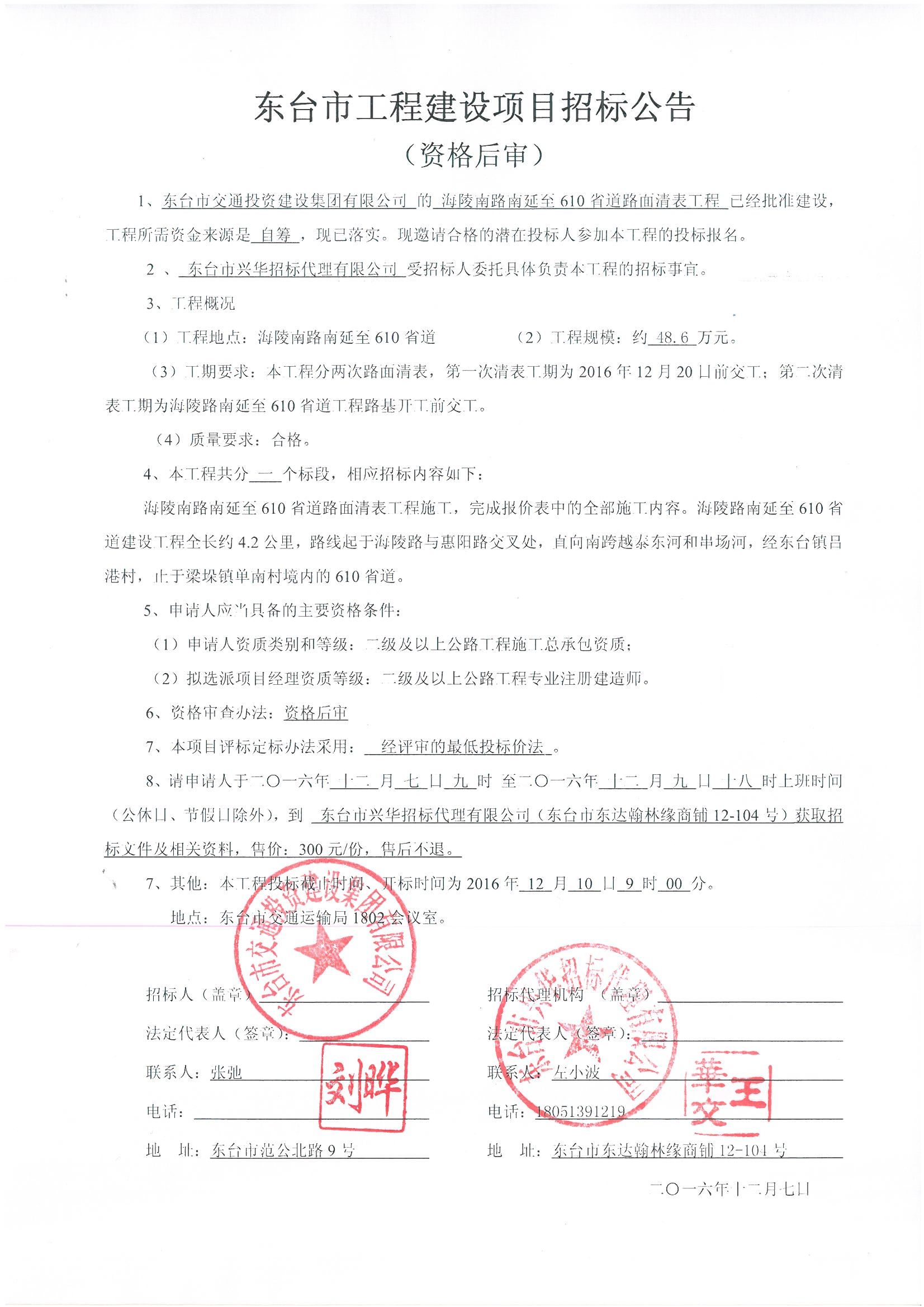 文章来源:东台市兴华招标代理有限公司 添加时间:2016/12/7 10:54:23 点击率:2339