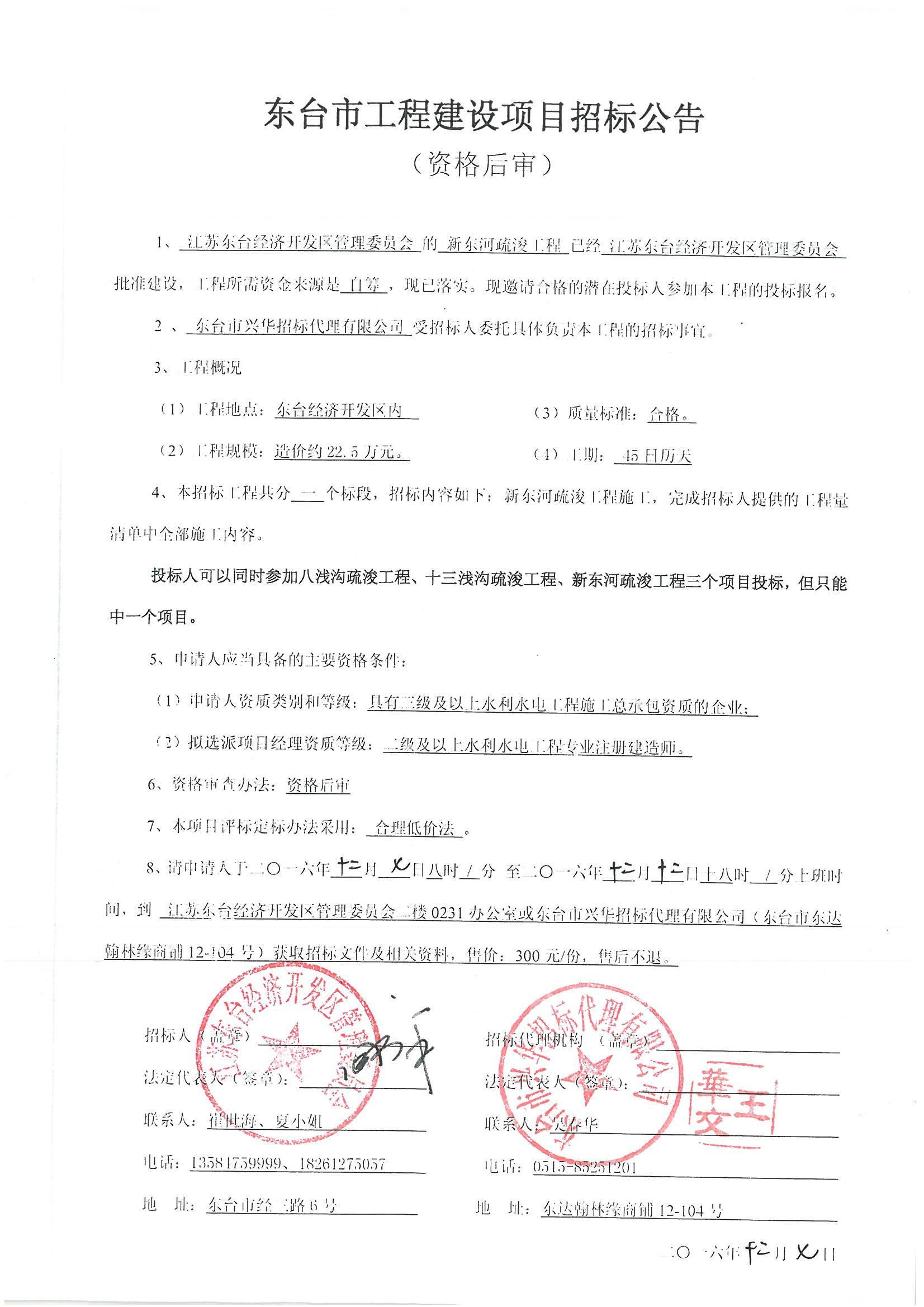 文章来源:东台市兴华招标代理有限公司 添加时间:2016/12/7 12:00:26 点击率:1942