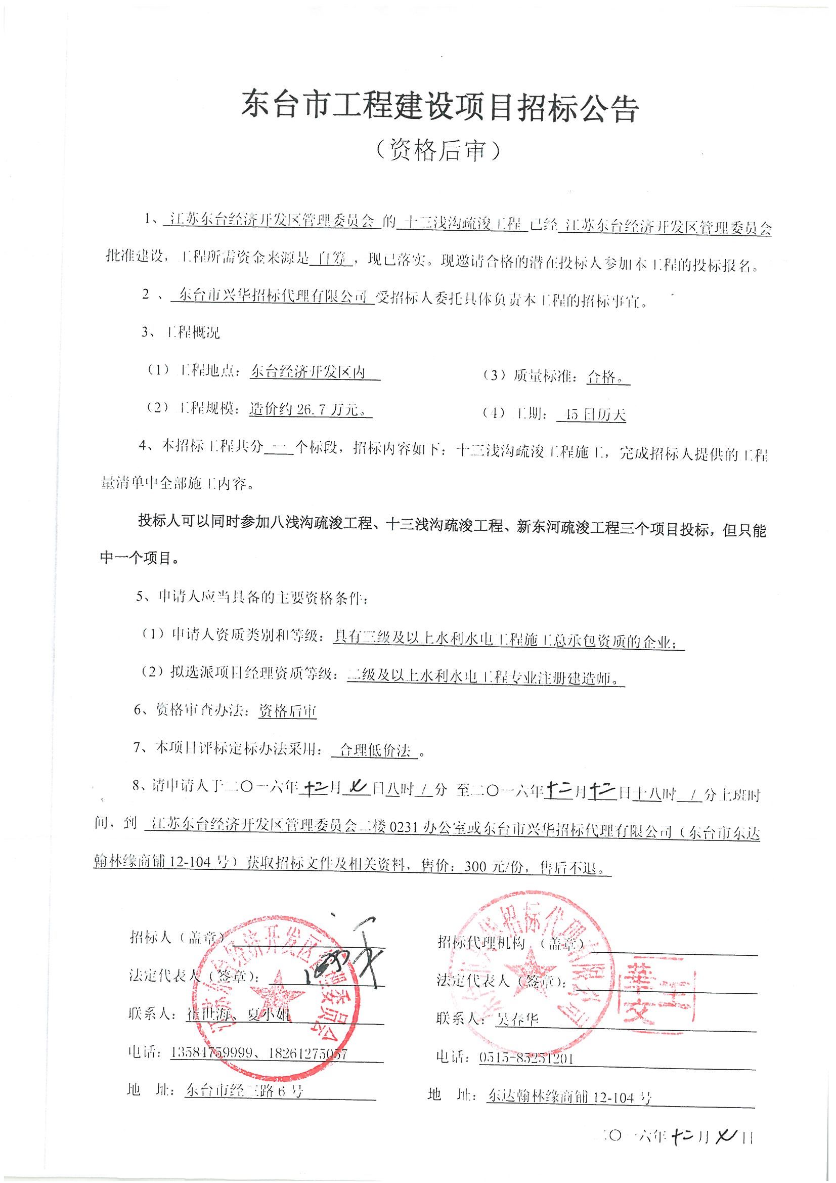 文章来源:东台市兴华招标代理有限公司 添加时间:2016/12/7 12:02:09 点击率:1866