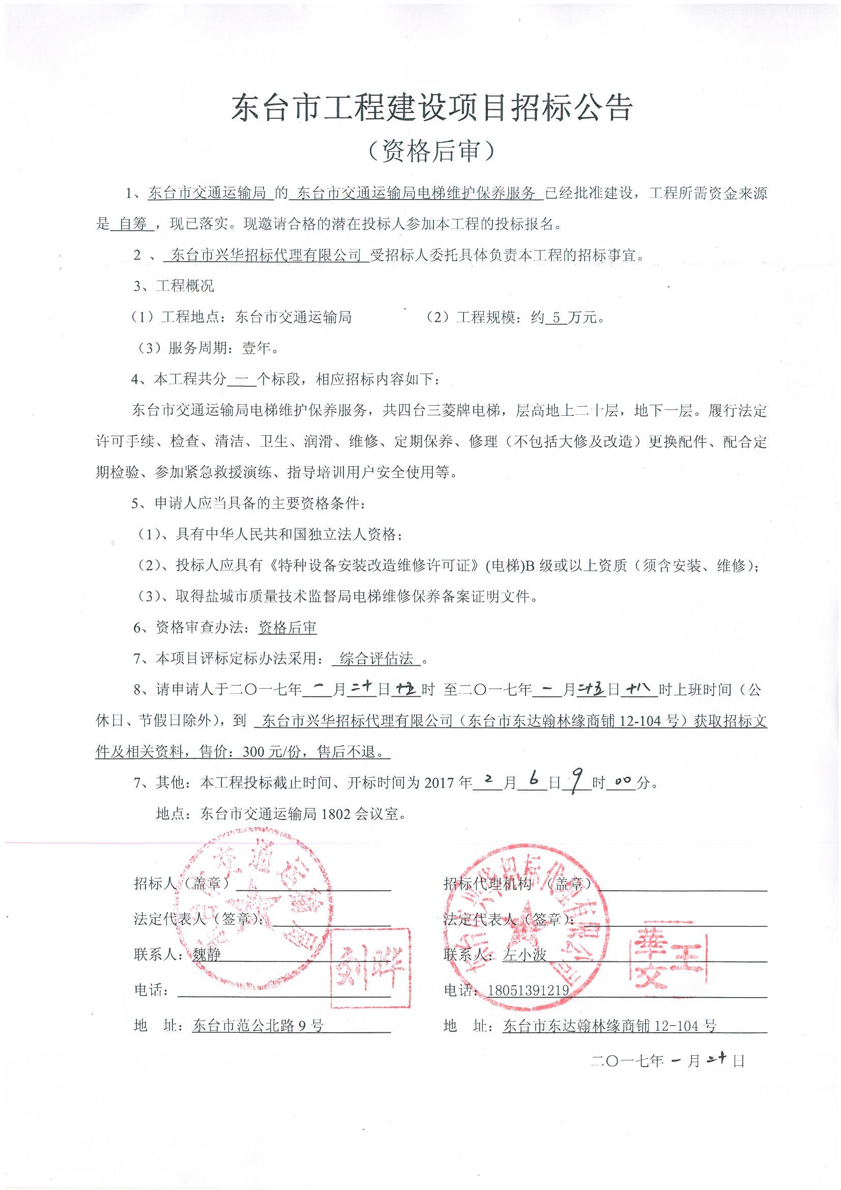 东台市交通运输局电梯维护保养服务