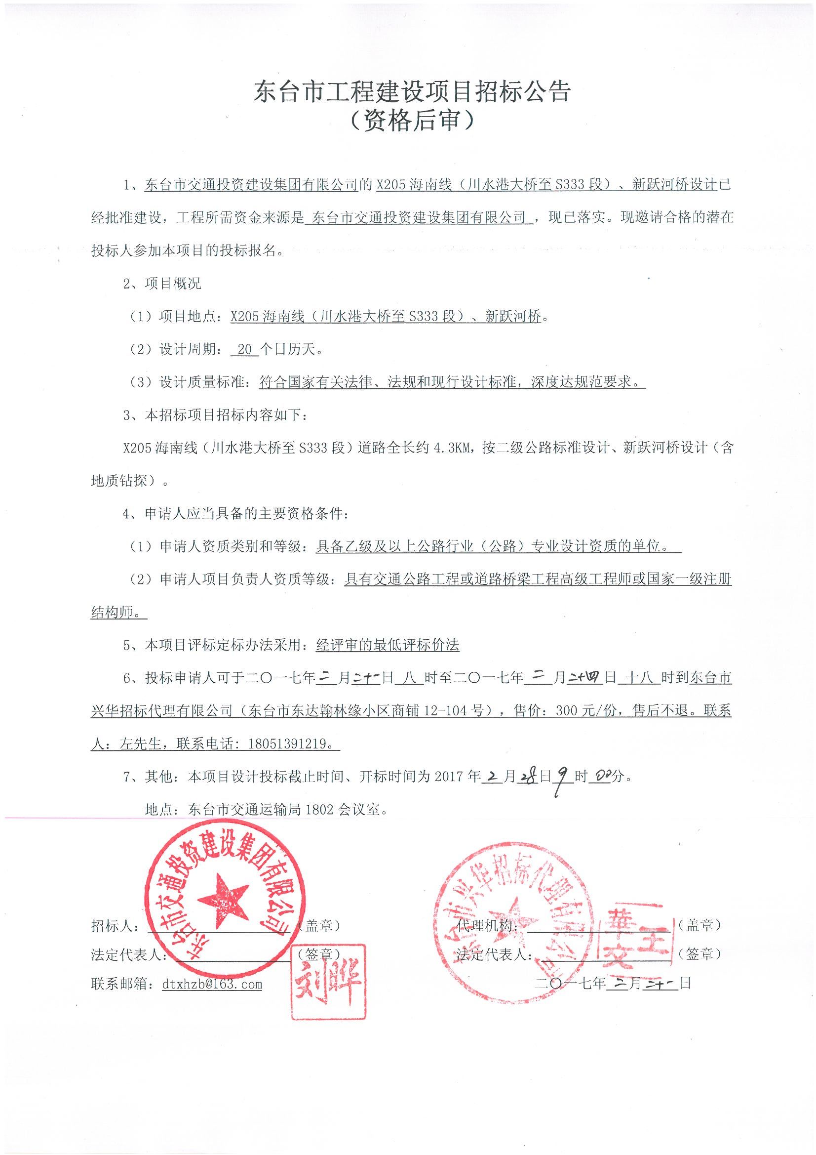 文章来源:东台市兴华招标代理有限公司 添加时间:2017/2/21 17:43:04 点击率:2088