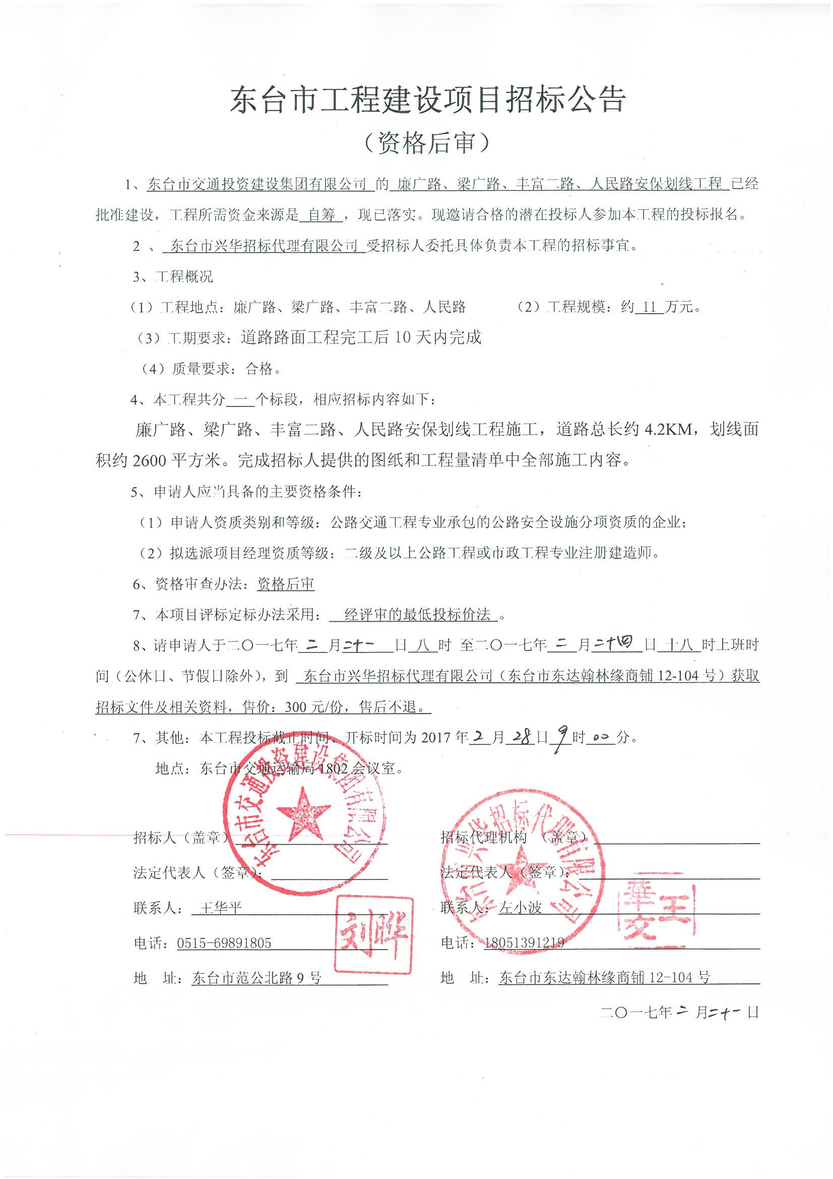 廉广路、梁广路、丰富二路、人民路安保划线工程