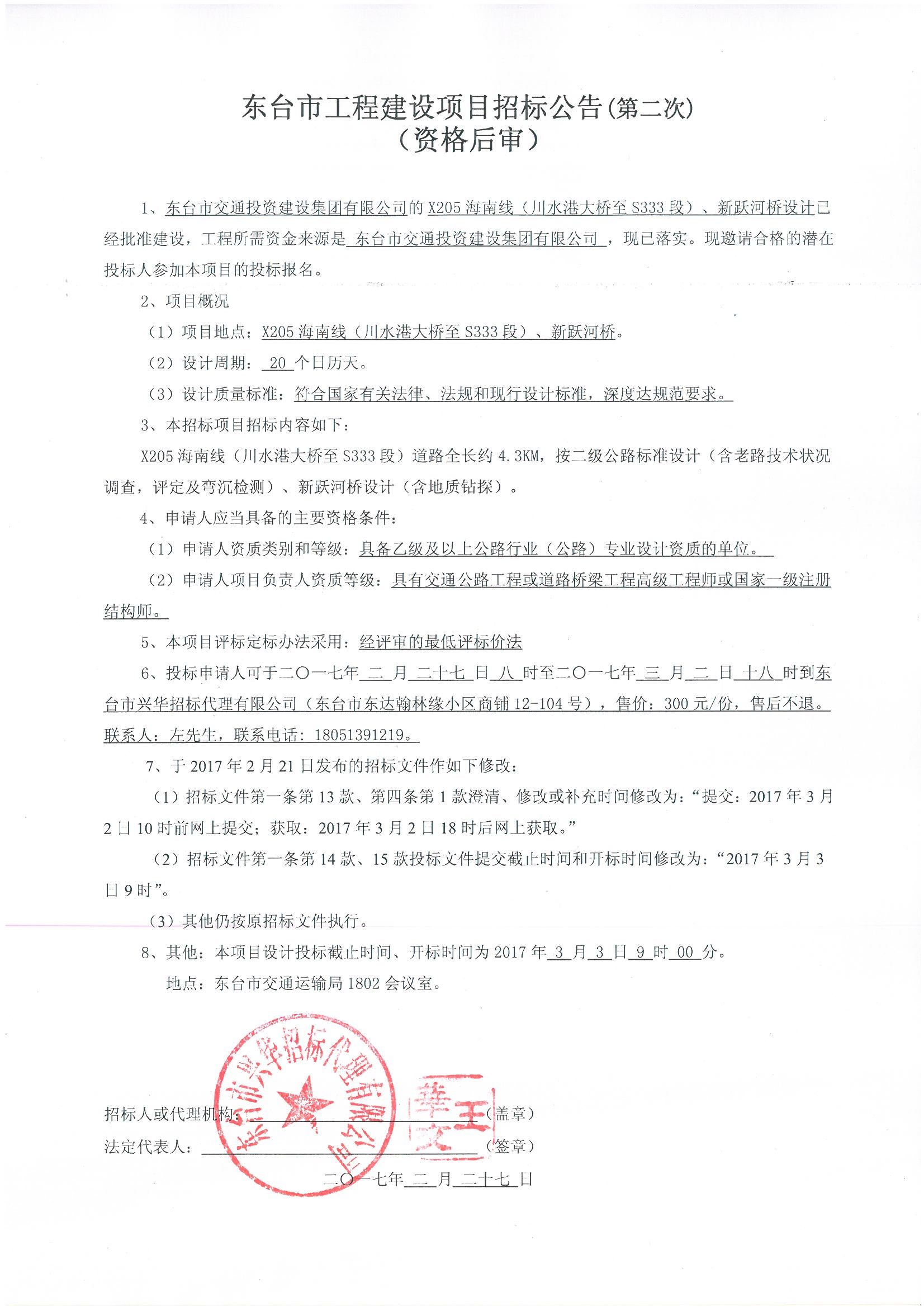文章来源:东台市兴华招标代理有限公司 添加时间:2017/2/27 9:37:47 点击率:1872
