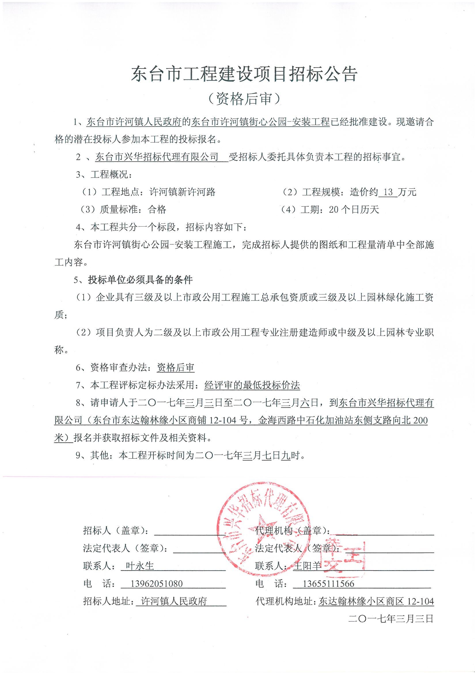 文章来源:东台市兴华招标代理有限公司 添加时间:2017/3/3 9:44:40 点击率:2027