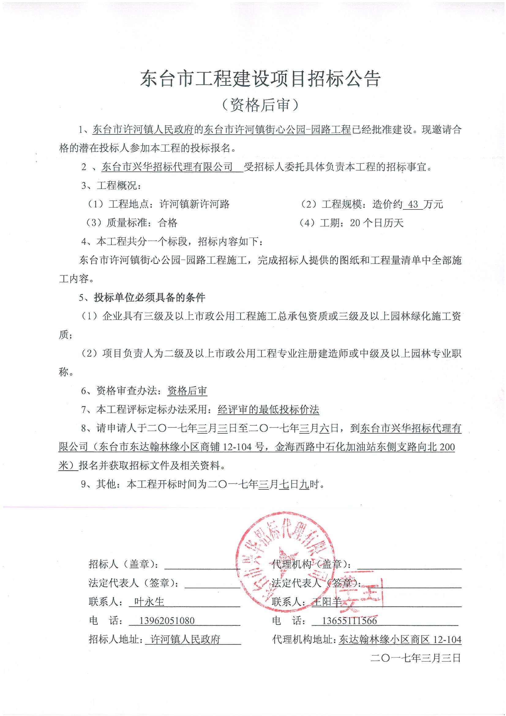 文章来源:东台市兴华招标代理有限公司 添加时间:2017/3/3 9:46:40 点击率:1964