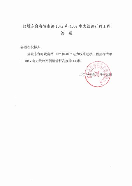 盐城东台海陵南路10KV和400V电力线路迁移工程
