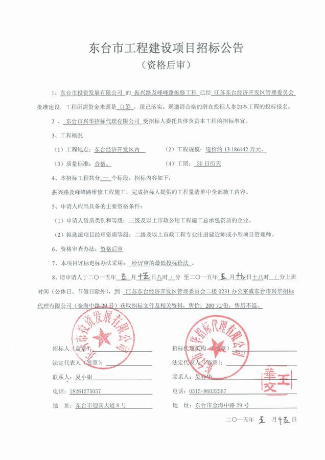 文章来源:东台市兴华招标代理有限公司 添加时间:2015/5/15 10:53:09 点击率:2630