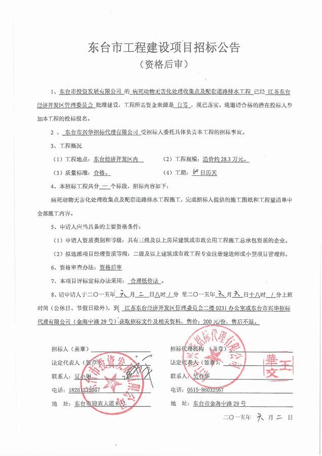 文章来源:东台市兴华招标代理有限公司 添加时间:2015/6/2 15:37:24 点击率:2825