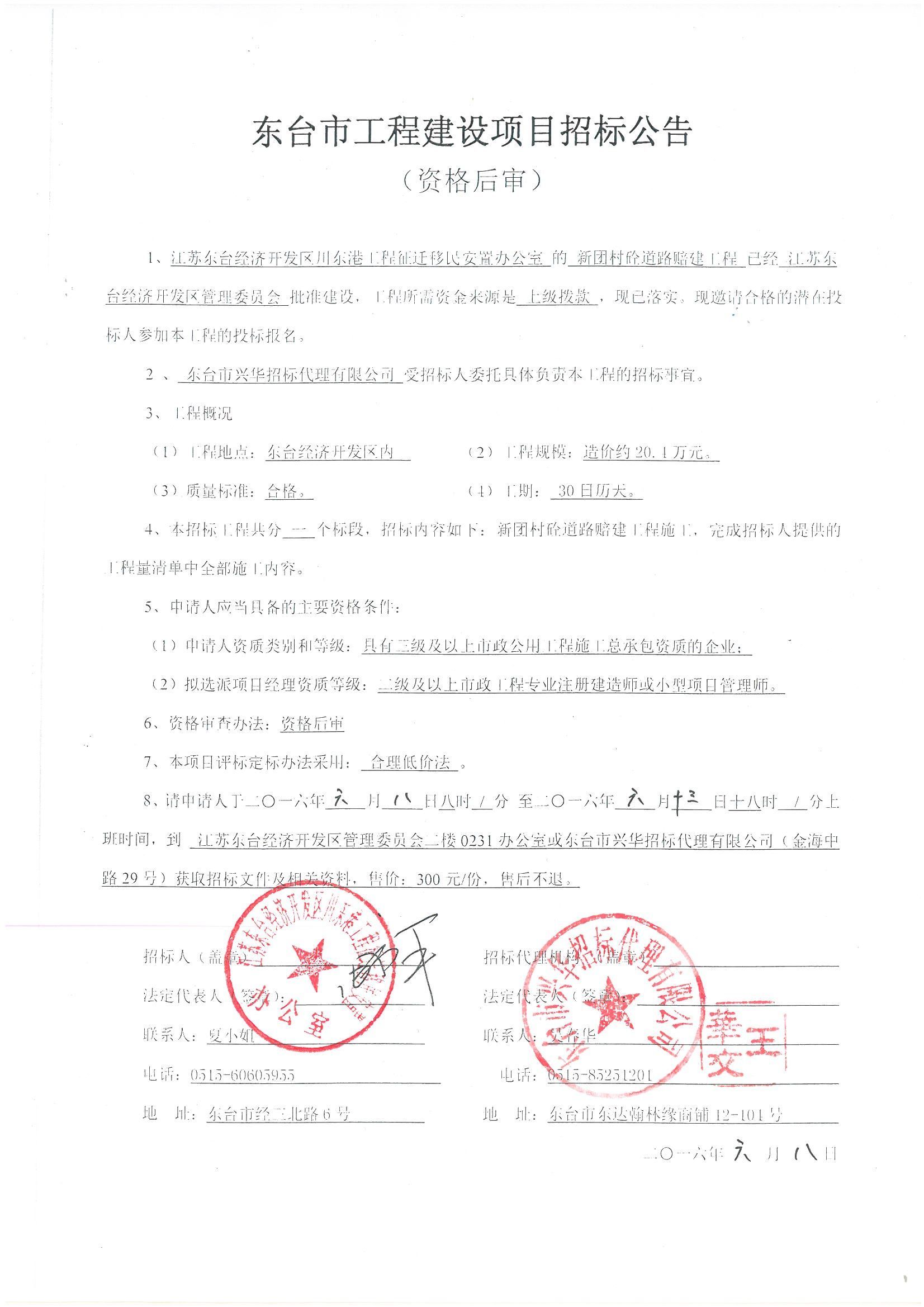 文章来源:东台市兴华招标代理有限公司 添加时间:2016/6/8 11:42:49 点击率:1769
