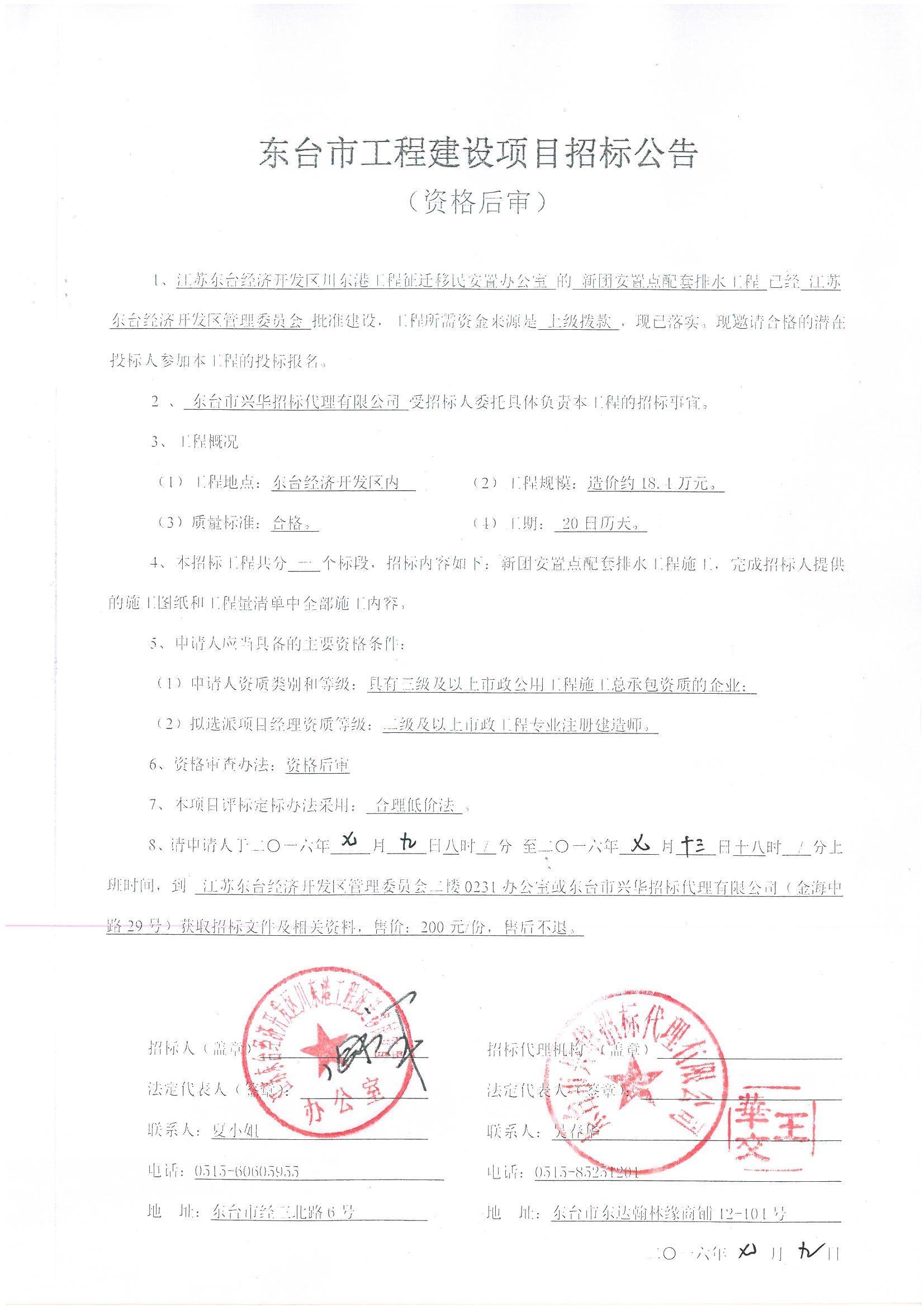 文章来源:东台市兴华招标代理有限公司 添加时间:2016/7/9 15:54:12 点击率:1866