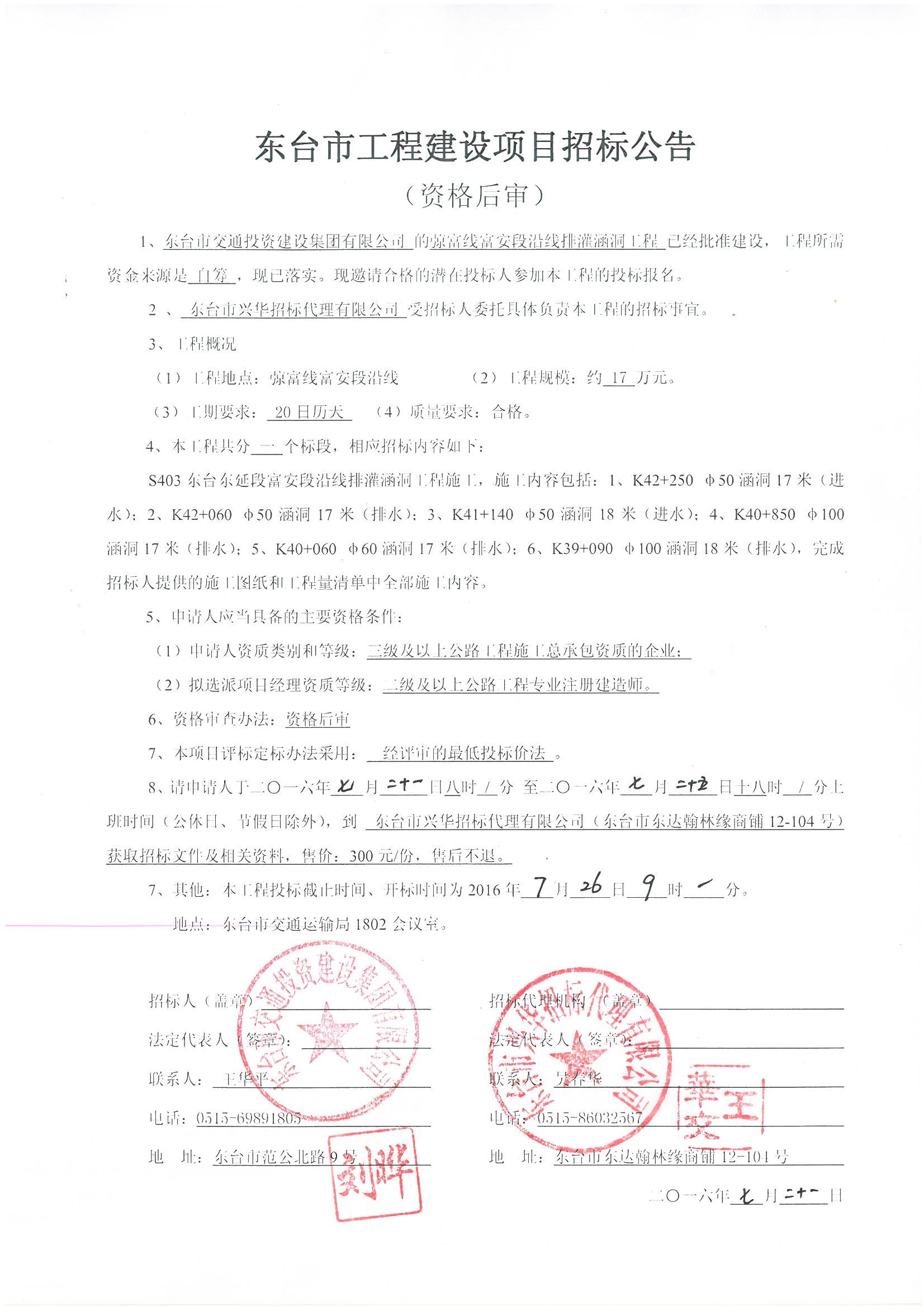 文章来源:东台市兴华招标代理有限公司 添加时间:2016/7/21 11:00:56 点击率:1901