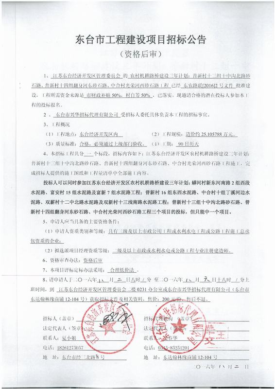 文章来源:东台市兴华招标代理有限公司 添加时间:2016/8/2 16:12:23 点击率:1939