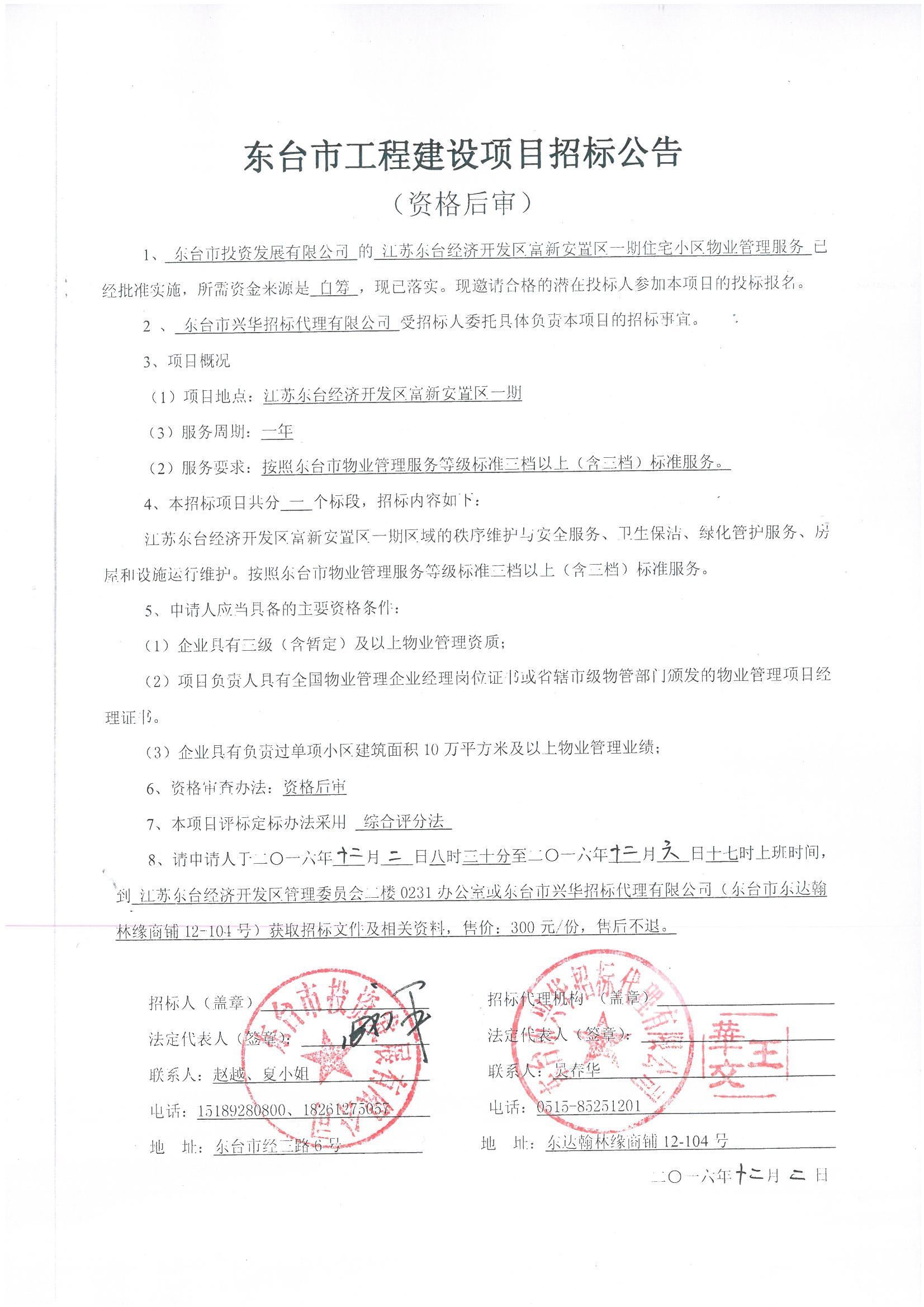 文章来源:东台市兴华招标代理有限公司 添加时间:2016/12/2 12:24:25 点击率:1758